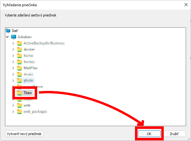 Na pevnom disku vytvorte nový adresár, napríklad s názvom „Titan“. Kliknite pravým tlačidlom na nový adresár a v kontextovom menu zvoľte možnosť „Vlastnosti“. Na záložke „Zdieľanie“ kliknite na tlačidlo „Zdieľať“. V okne nastavení podľa preferencií vyberte používateľa, ktorý bude mať oprávnenie pristupovať k danému adresáru. V tomto príklade je pre jednoduchosť povolený prístup pre všetkých „everyone“. Pri vybranom používateľovi je potrebné nastaviť úroveň povolení na „čítanie alebo zapisovanie“. Následne je potrebné kliknúť na „Zdieľať“ a „Hotovo“.