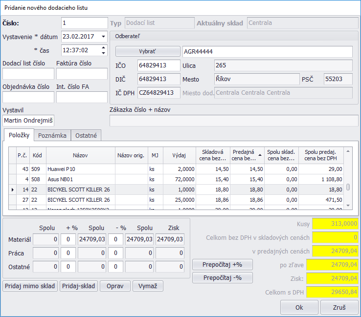 Jednou z povinností vyplývajúcich zo zákona je nutnosť vyhovovania dodacieho listu pre odberateľa, ktorý je považovaný za účtovný doklad a musí obsahovať všetky potrebné náležitosti potvrdzujúce objednanie a dodanie tovaru a služieb. Systém dokáže automaticky vygenerovať dodací list z výdajky, cenovej ponuky alebo vygenerovať faktúru z dodacieho listu a mnoho iných funkcií.
