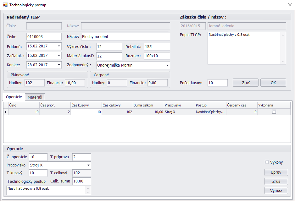 Technologický postup slúži na evidenciu operácií správneho postupu pri vykonávaní práce a zároveň určuje výrobné prostriedky a náklady potrebné pre výrobu. Pomocou modulu je možné zabezpečiť správny a optimálny priebeh výroby, ktorý bude zároveň zrozumiteľný pre obsluhu. Výsledok takejto optimalizácie bude vysoká hospodárnosť, vďaka plne využitého výrobného zariadenia pri minimálnych výrobných nákladoch.