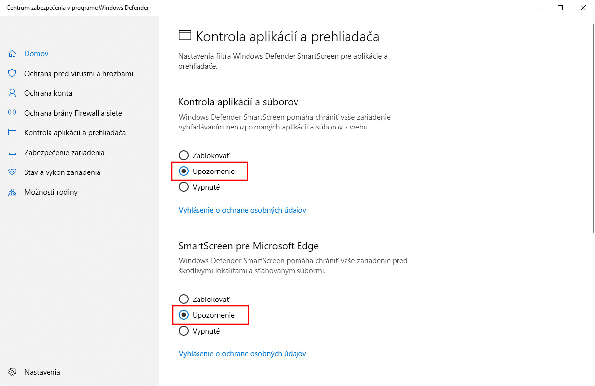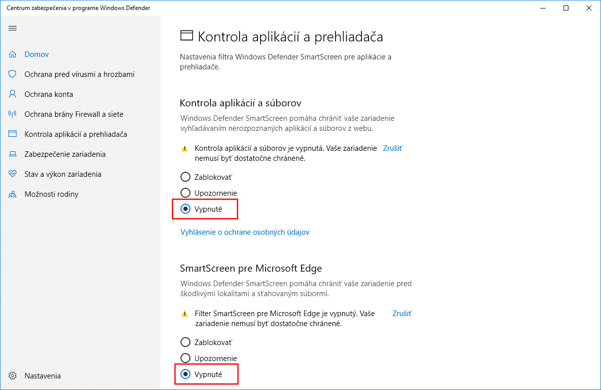 UPOZORNENIE! Vypínanie kontroly Windows Defenderu vykonávajte iba pri aplikáciách, ktoré máte z dôveryhodných zdrojov a ste si istý, že sú bezpečné.